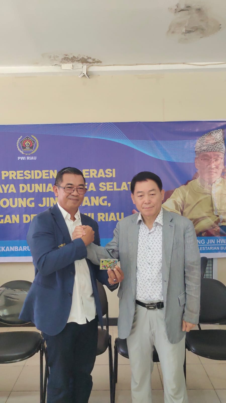 PEKANBARU,Riaueksis.com-- Persatuan Wartawan Indonesia (PWI) Riau berkesempatan mendapatkan kunjungan kebangsaan yang digelar dalam Silaturahmi Presiden Federasi Pelestarian Budaya Dunia Korea Selatan Prof. Young Jin Hwang dan rombongan di Sekretariat Gedung PWI Riau, Rabu (28/05/2025).