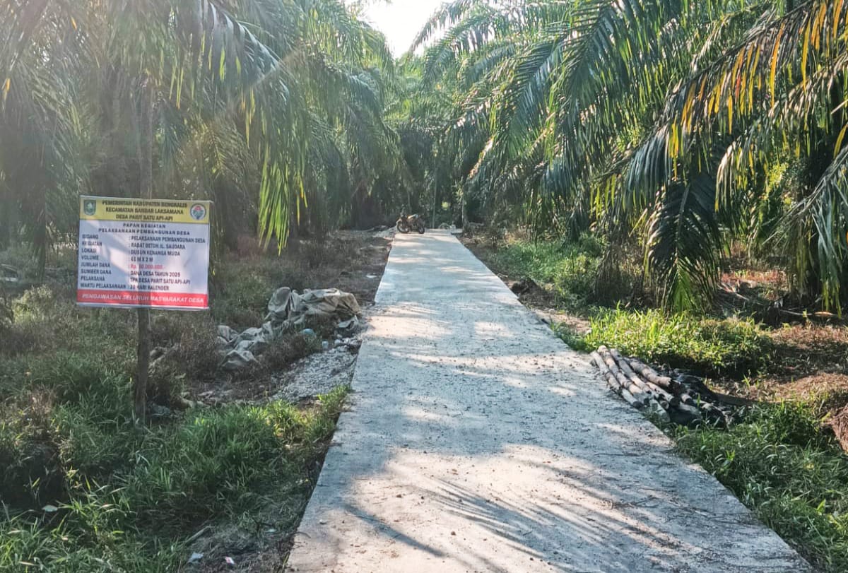 BANDAR LAKSAMANA, Riaueksis.Com — Sebagai salah satu upaya untuk meningkatkan infrastruktur desa, Pemerintah Desa Parit 1 Api-api, Kecamatan Bandar Laksamana, Kabupaten Bengkalis melaksanakan pembangunan rabat beton menuju perkebunan masyarakat.